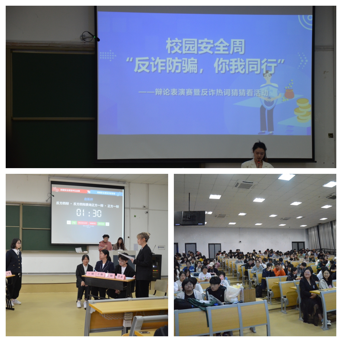 4月12日晚,“反诈防骗,你我同行”辩论表演赛暨反诈热词猜猜看活动在SB104进行,保卫处李珍老师和9728太阳集团沈樱枝老师出席。9728太阳集团辩论队围绕“校园安全主要依靠学校管理/学生自律”唇枪舌剑、针锋相对,为200余名现场观众带来了一场精彩的言语盛宴。反诈热词猜猜看活动以小游戏的方式,让同学们了解常见诈骗手段,提高意识警惕,现场欢声笑语不断。最后,学院学生会主席吴美瑶同学开展安全主题宣讲,进一步加强反诈防骗教育。