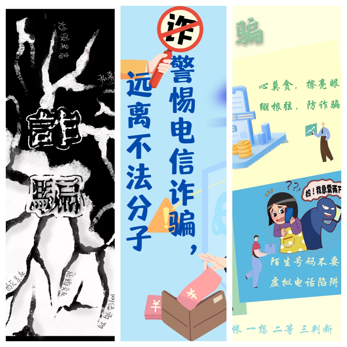 4月10日-4月20日,学院组织了反诈防骗创意作品征集大赛,共收到传媒、土建、设计、数据和商院等多个学院的作品。同学们以极大激情、极大潜力,通过文字、图片、PPT和视频等方式,创作了诸多安全主题相关作品。