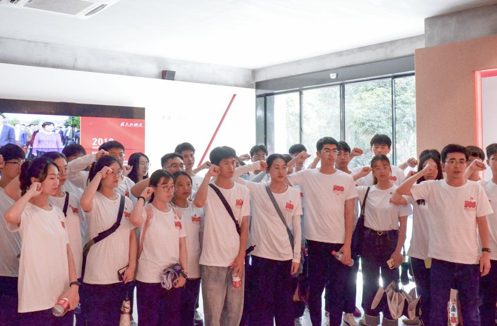 学生党员们着装整齐、队列有序,在完成半个小时的“红色毅行”后到达天宫庄园。在讲解员的带领下,大家依次参观了政治生活馆和幸福生活馆,回顾了在革命年代和新中国建设的历史进程中鄞县党员儿女做出的贡献,了解了湾底村实现村强民富、走向幸福生活动的路径。