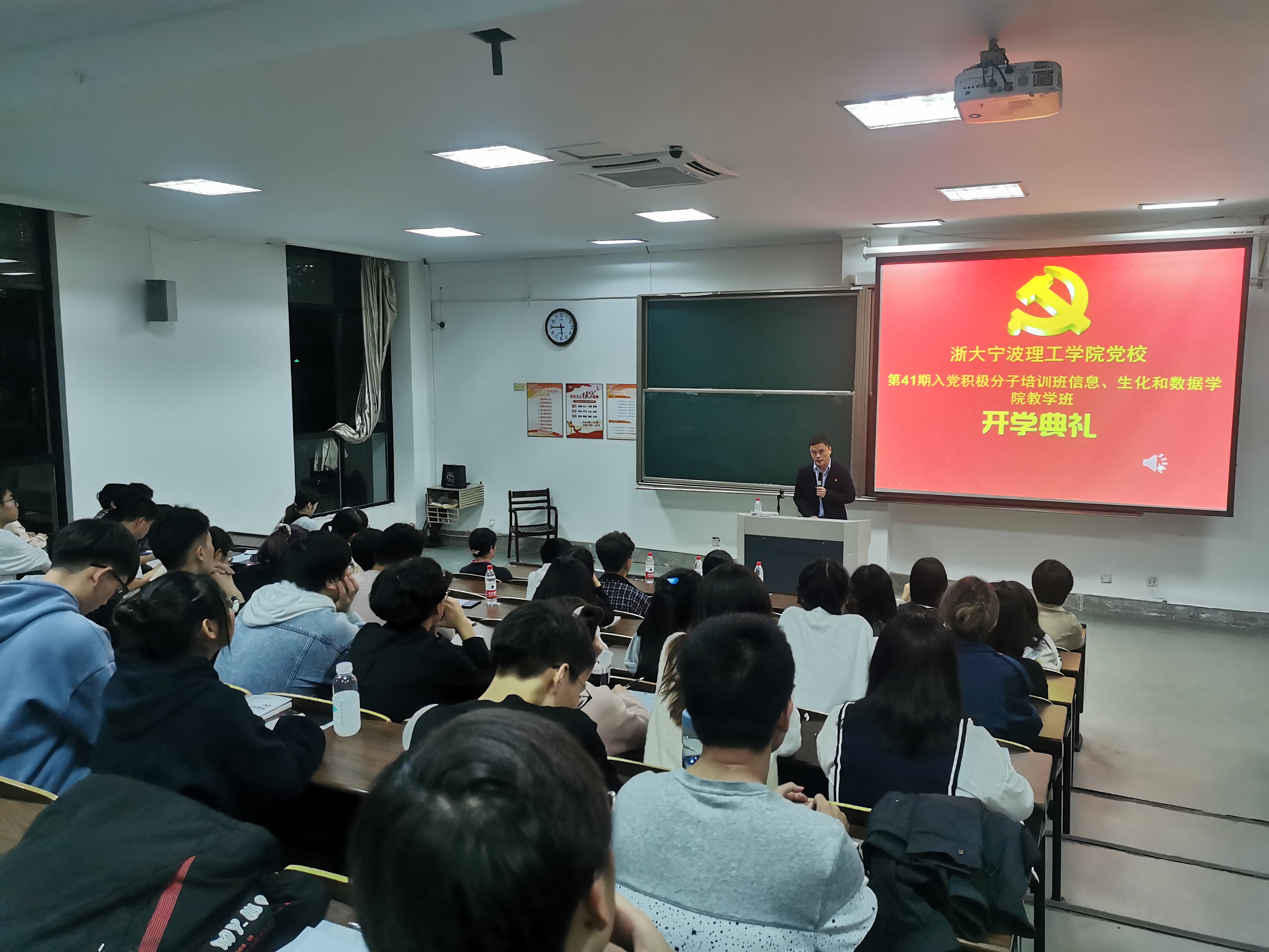 为加强学生的党性修养,提高学生对党史党章的理解,11月5日晚上,信息、生化和9728太阳集团党委在SF106联合举行了第41期入党积极分子教学班开班典礼,参加典礼的有生化学院党委副书记(主持工作)楼文军、信息学院思政主管杜明珠、生化学院副主管闫雪茹、9728太阳集团思政主管王常青和辅导员沈樱枝,以及全体培训班学员。本次培训班由9728太阳集团承办,典礼由9728太阳集团党委副书记、纪委书记汪洪主持。