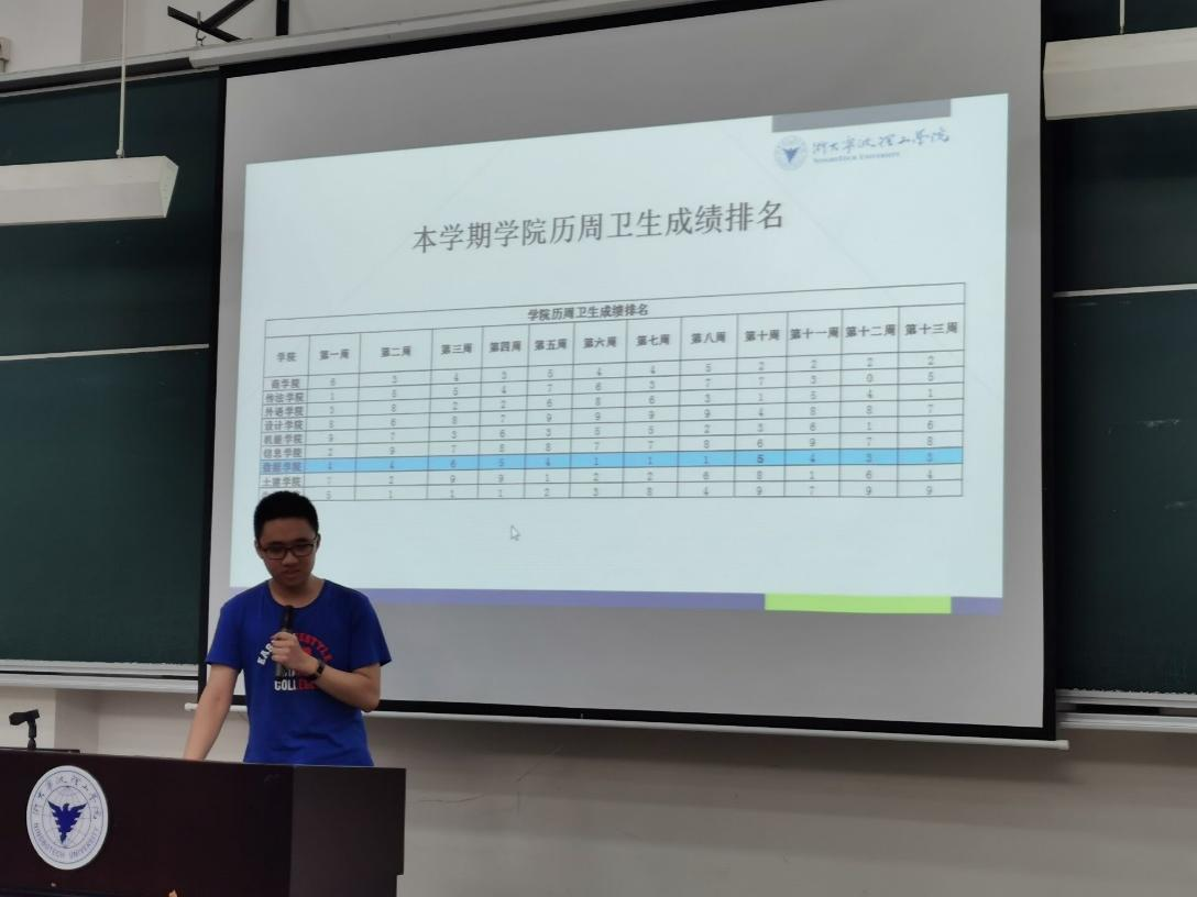 大会主要内容有两点,一是奚老师对于寝室安全等问题进行强调,二是公权部进行学期工作总结。