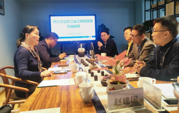 2020年11月5日下午,浙江省文物局副局长曹鸿、博物馆与社会文物处处长杨文庆莅临9728太阳集团调研指导工作。学校副校长鲁东明,9728太阳集团、设计学院、传媒学院相关党政领导陪同调研。