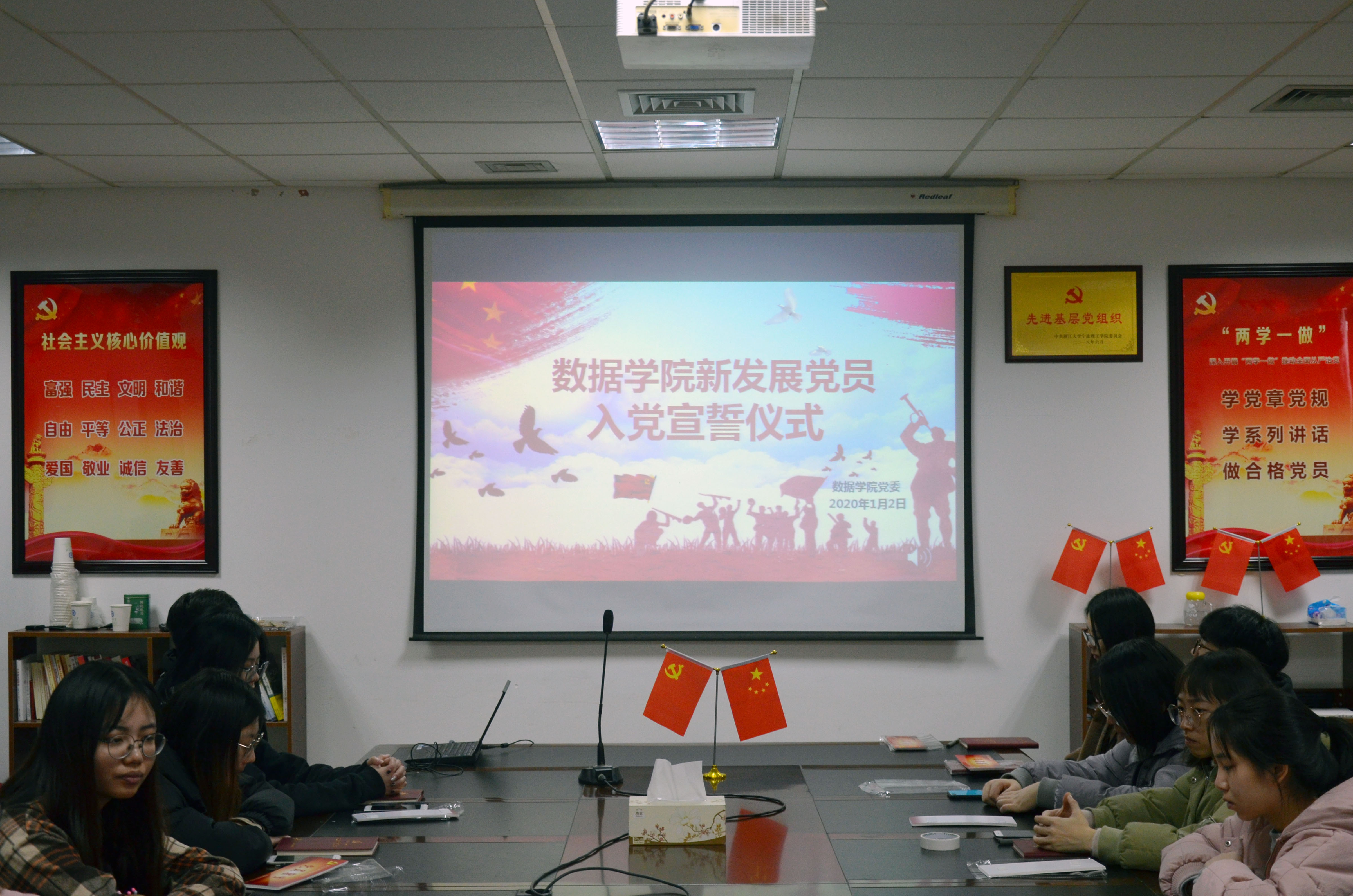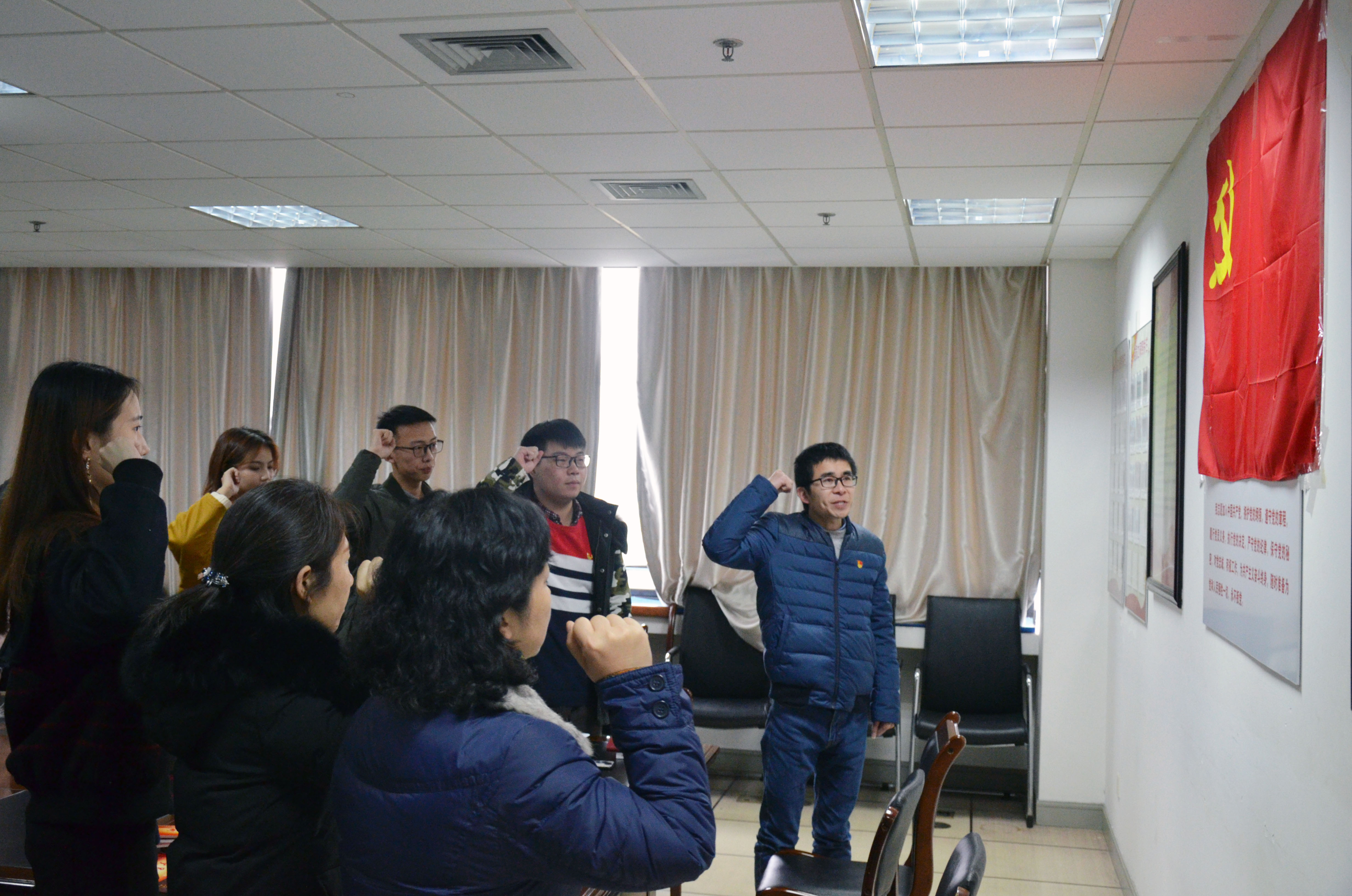 1月2日下午,9728太阳集团在石麟602党员之家举行新发展党员入党宣誓仪式,学院党委副书记、纪委书记汪洪老师出席本次仪式,学院学生党支部书记以及2019年下半年全体新发展党员参加,仪式由王常青老师主持。