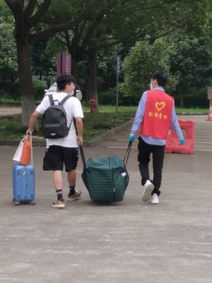 为解决好返校当天西门到寝室的“最后一公里”问题,9728太阳集团团委组织学生志愿者开展入校引导、体温测量和行李搬运服务。志愿者满怀热情、体贴周到的服务让校园充满了温馨和美好。