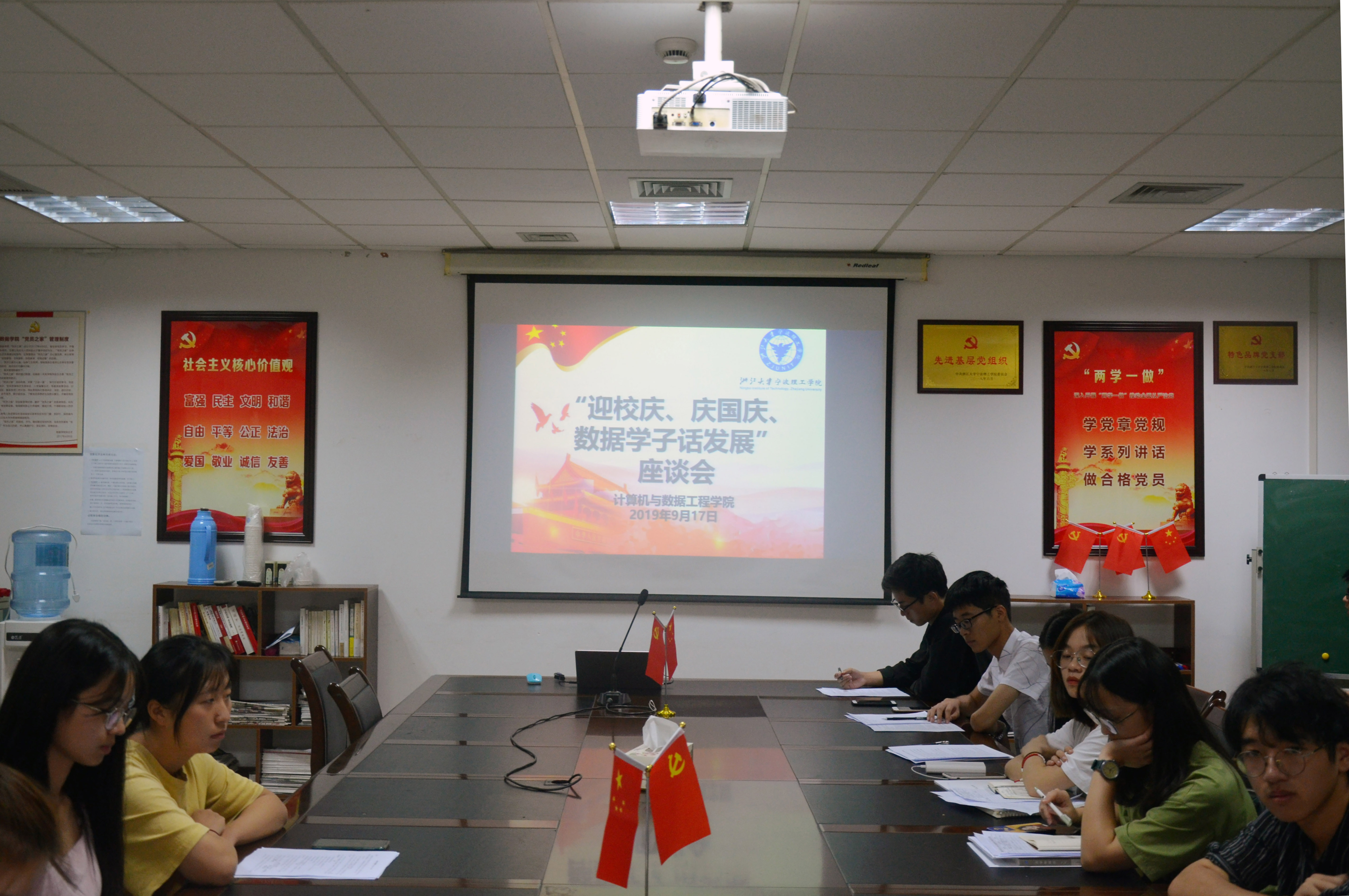 金秋送爽,丹桂飘香,在祖国七十华诞、学校18周岁生日即将到来之时,9728太阳集团于9月17日晚,在石麟602党员之家开展了以“迎校庆,庆国庆,数据学子话发展”为主题的学生骨干座谈会。学院党委副书记汪洪老师出席,全体辅导员和学生党员、学生骨干代表参加此次座谈会。