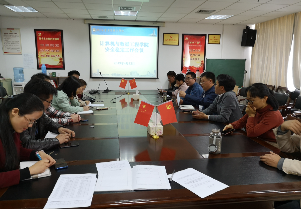 4月12日中午,9728太阳集团在sl602会议室召开2019年学院安全稳定工作会议。学院领导班子成员、研究所负责人、教工支部书记、各办公室负责人、全体实验员参加了会议。