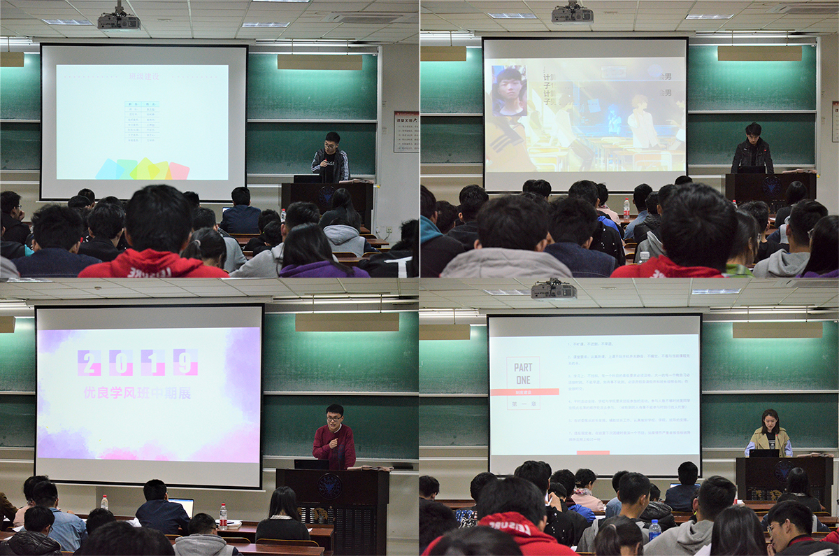 为营造良好的班级学习氛围,加强学院学风建设,9728太阳集团于4月10日18:30在NC101教室开展了2019年度优良学风班中期展示会。出席本次大会的有学院党总支副书记汪洪老师、团委书记马炜栋老师、陈辉老师,各班班长、团支书及学生代表参加。