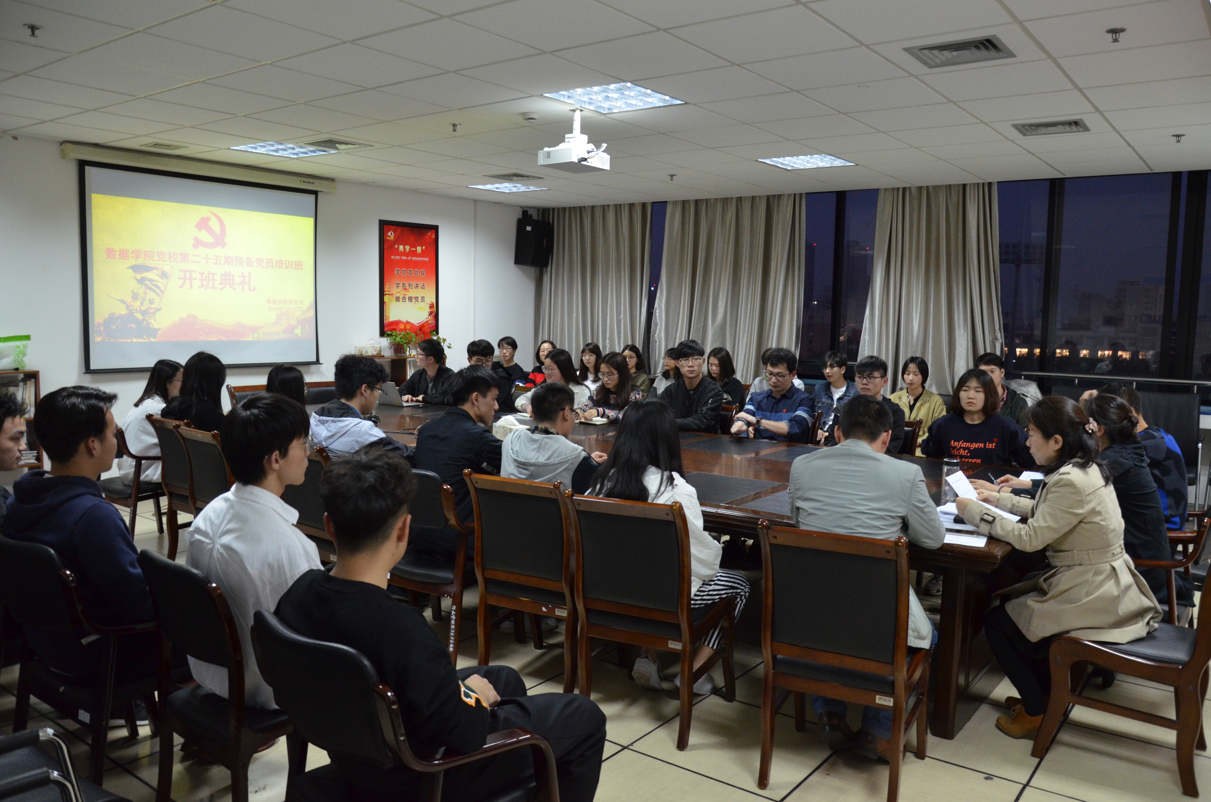 9728太阳集团于2018年3月30日18:30在石麟602党员之家举行了党校第25期预备党员培训班开班典礼。参加此次典礼的有学院党总支书记方国娟老师,各学生党支部书记以及9728太阳集团全体预备党员。王常青老师主持会议。