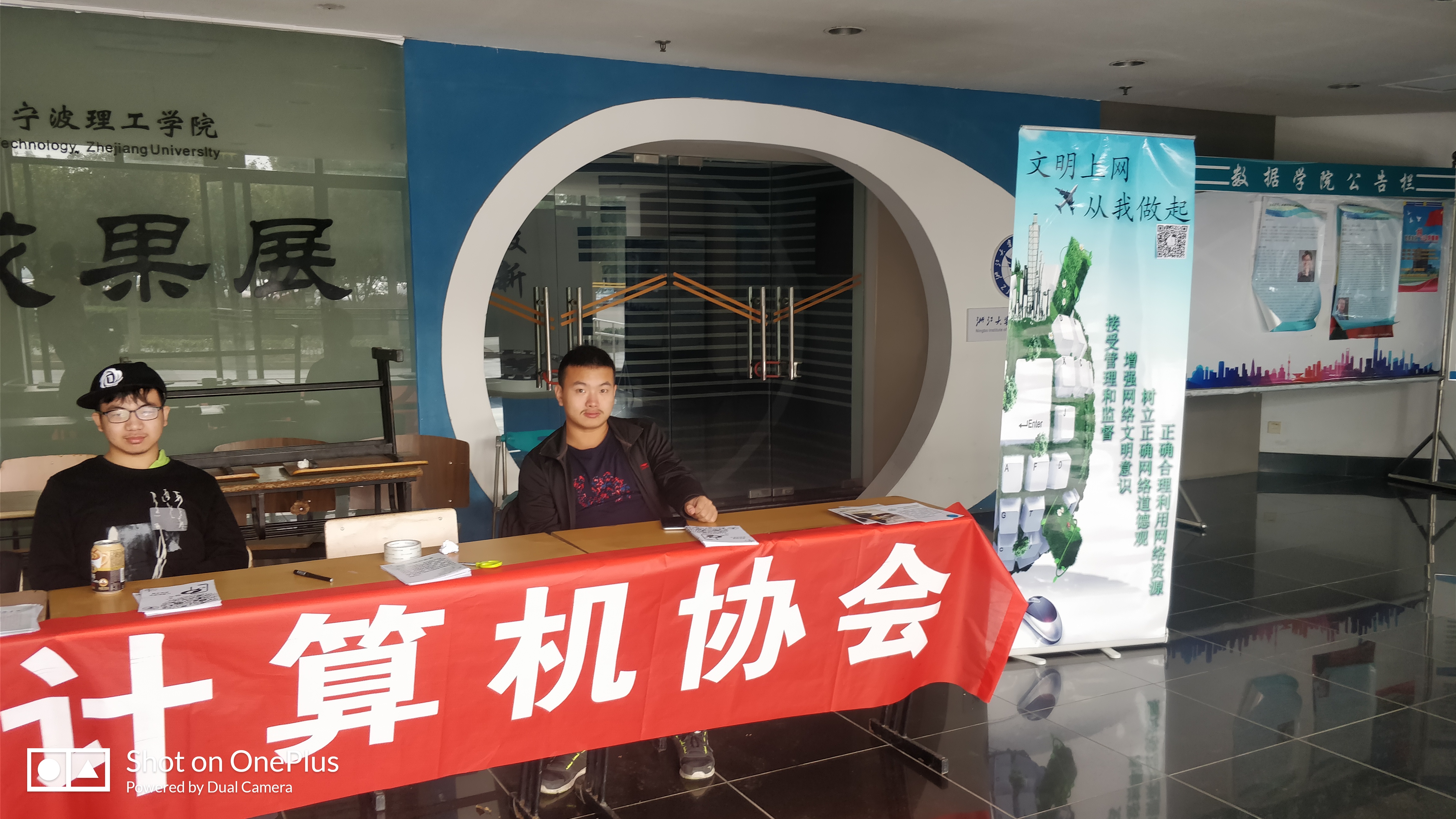 2017年10月31日至11月1日,为了学习贯彻党的十九大指导思想,落实《网络文明宣传书》,9728太阳集团计算机协会在石麟大楼一楼开展智慧青年科技行之“文明上网宣传活动”。