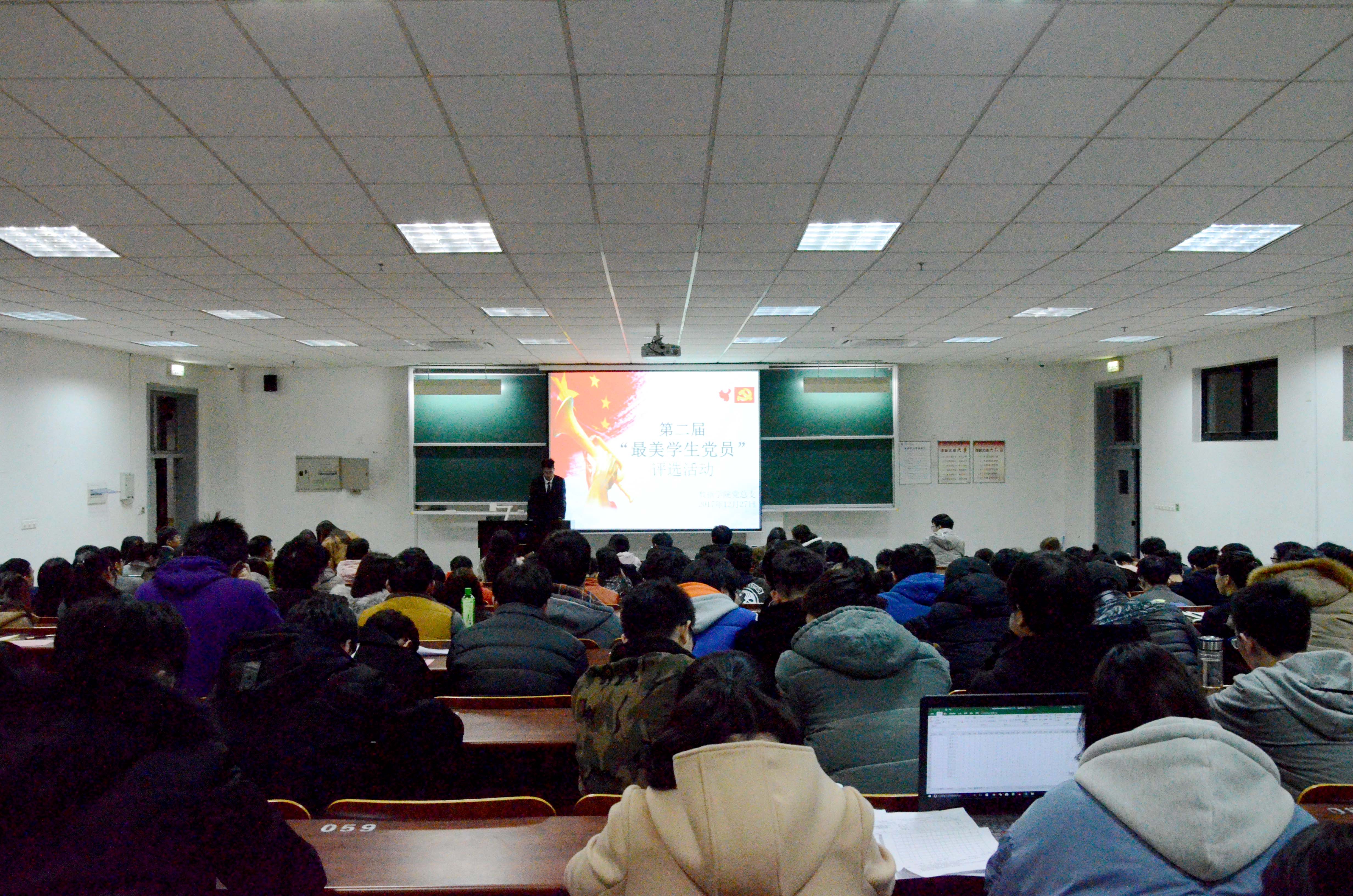 9728太阳集团党总支于12月27日晚在NF101举行了第二届“最美学生党员”评选活动,学院党总支书记方国娟、思政主管王常青、团委书记陈辉和全体党员及学生代表参加了活动。本次活动由第一届“最美学生党员”、学校“十佳大学生”和宁波市“优秀大学生”获得者鲍东同学主持。