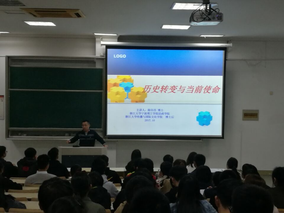 典礼在庄重的《国际歌》歌声中落下帷幕。随后法政学院陈印昌老师为党校学员做了主题为《历史转变和当前使命》的第一课。
