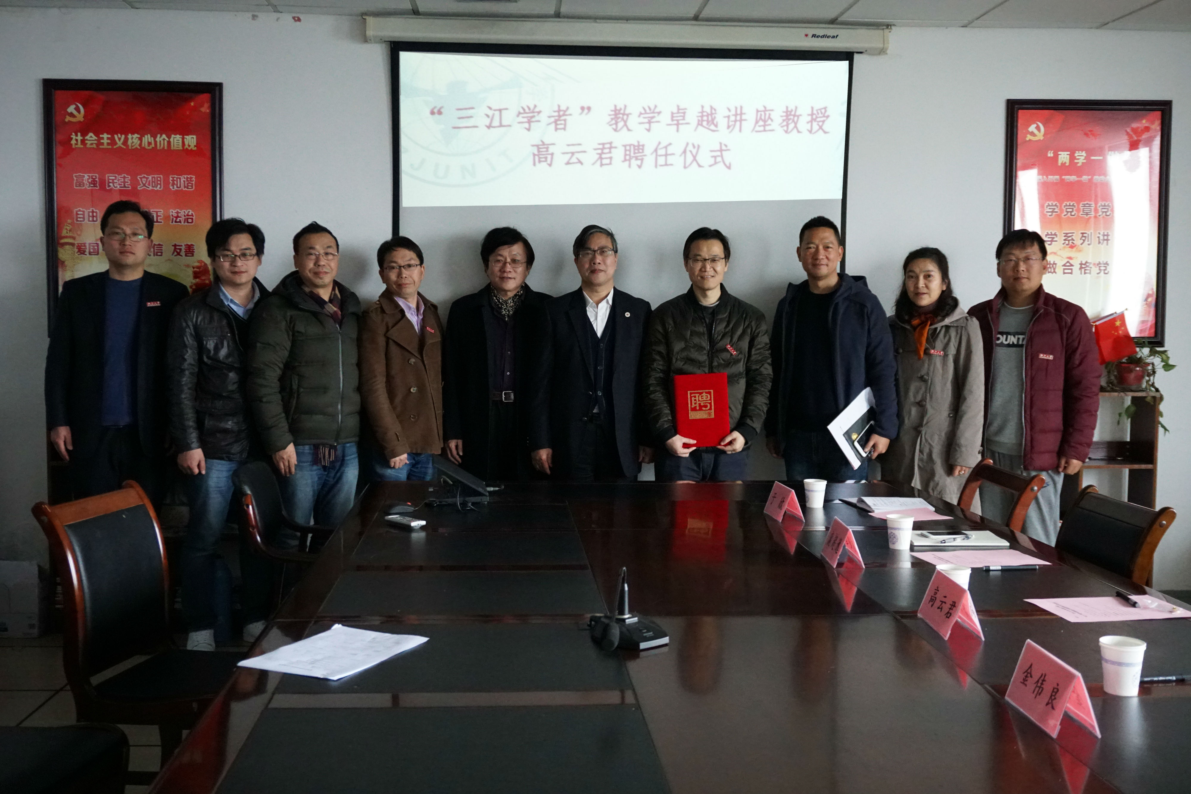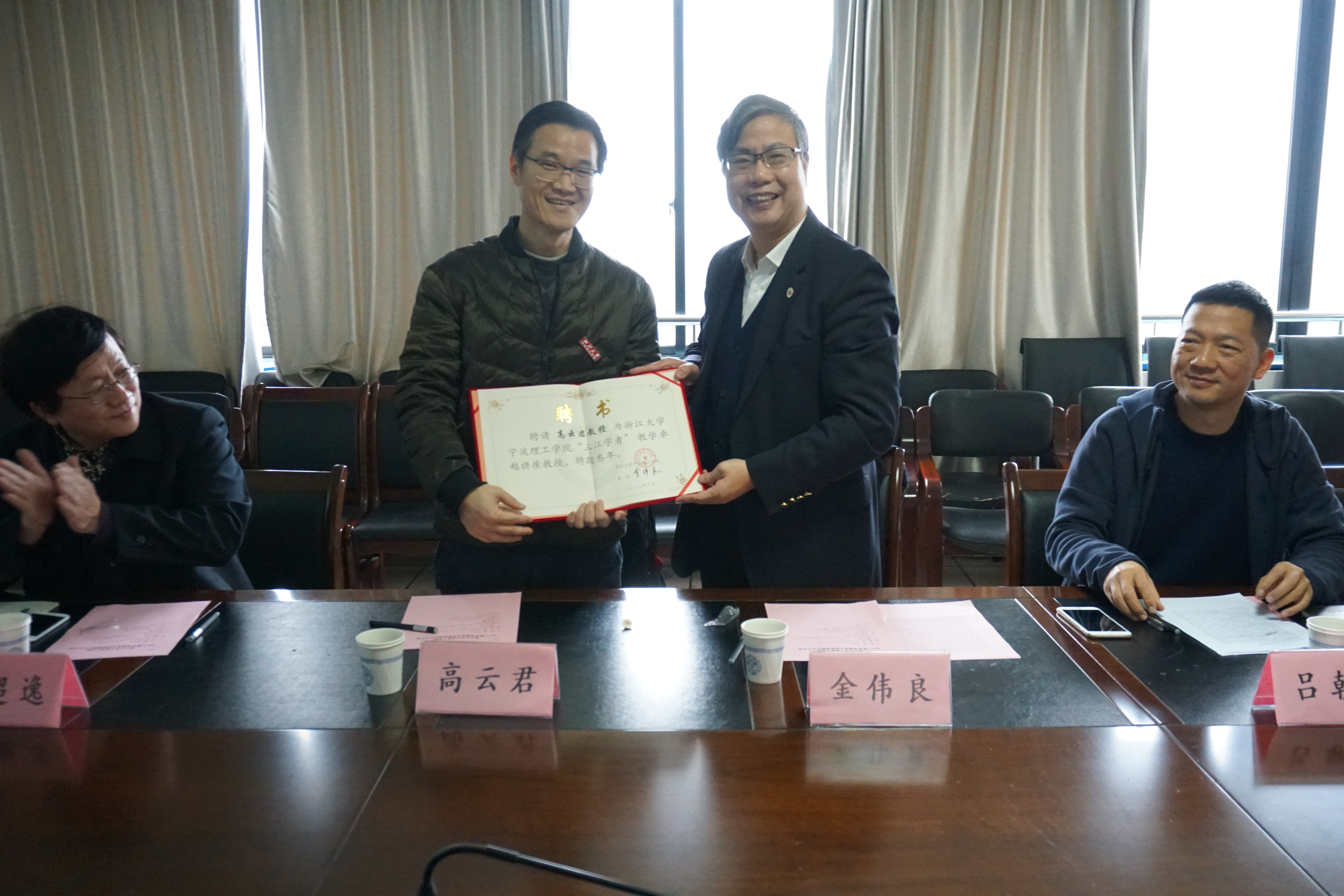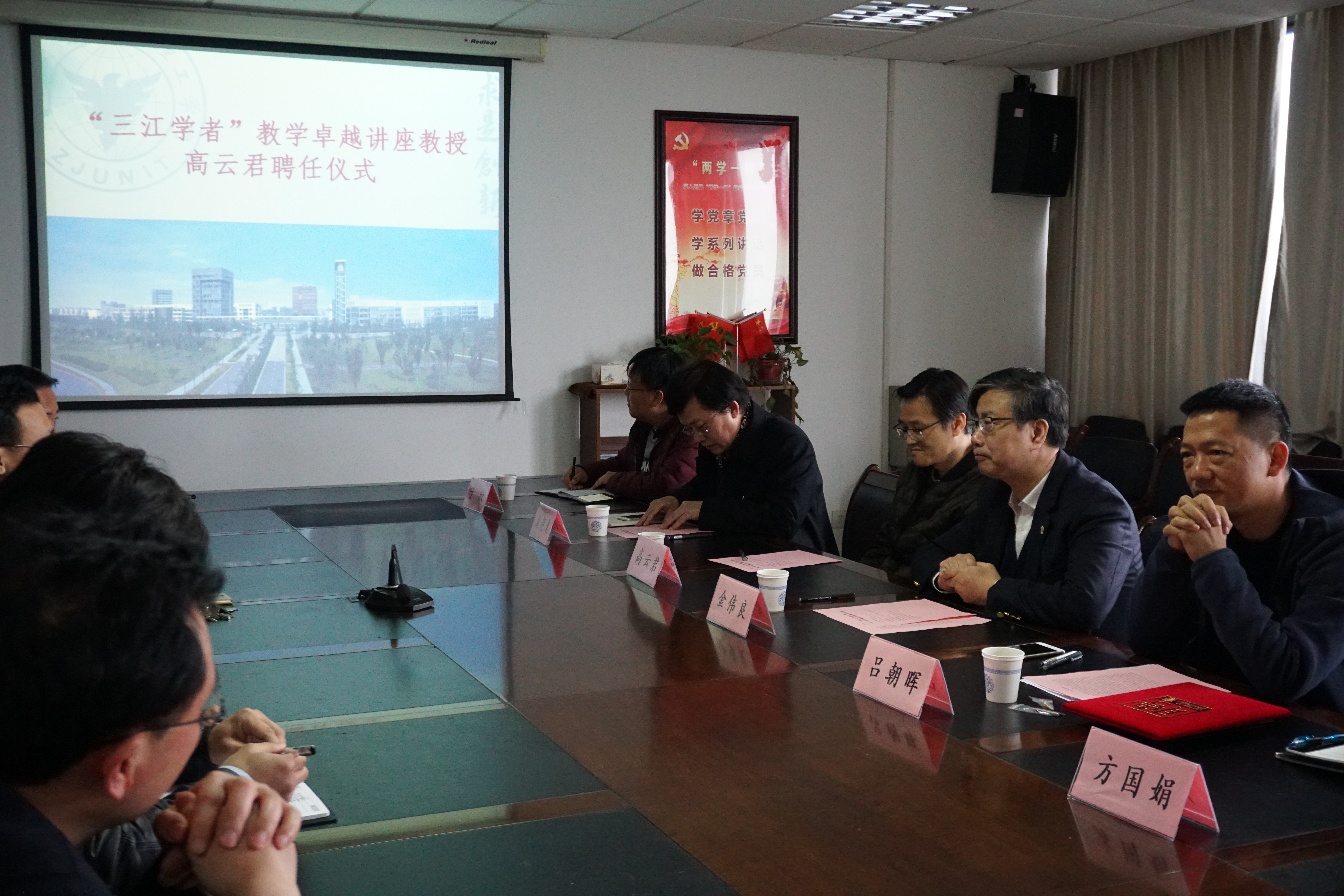 2018年3月20日上午,学校在石麟大楼602室举行“三江学者”讲座教授聘任仪式,聘任浙江大学高云君教授为9728太阳集团教学卓越讲座教授。院长金伟良、人事处处长吕朝晖、9728太阳集团领导以及计算机研究所教师代表参加了聘任仪式, 仪式由数据学院院长庞超逸主持。