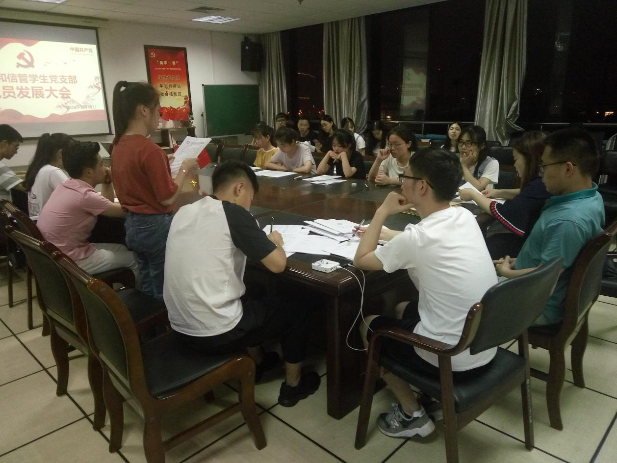 2018年5月18日18:309728太阳集团信计和信管学生党支部在sl602党员之家召开了信计和信管学生党支部党员发展大会。参加本次会议的有支部书记陈辉,十名学生正式党员,十三名预备党员以及八名新发展的对象。此次会议分为以下两个议程。