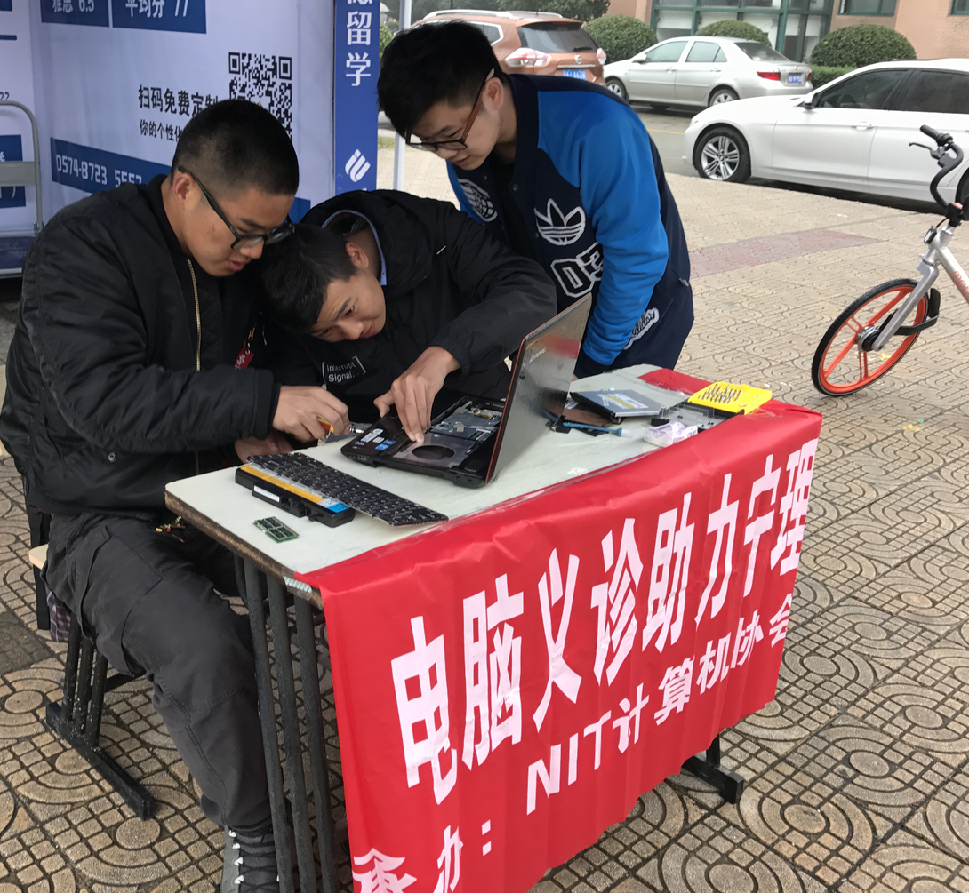 3月5日是学雷锋纪念日。为纪念雷锋同志、弘扬雷锋精神,9728太阳集团志愿者们及计算机协会在两岸超市门口开展了科技校园行之电脑义诊活动。