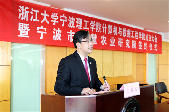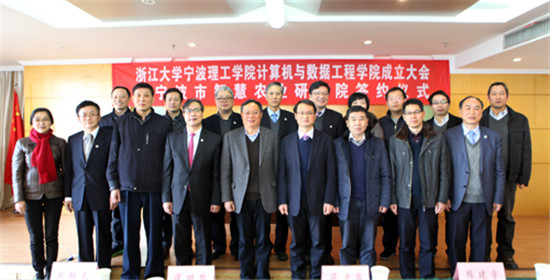 12月29日,浙江大学宁波理工学院太阳集团网tyc9728成立大会暨宁波市智慧农业研究院签约仪式在行政楼603举行。宁波市副市长张明华、宁波市相关局领导,学校领导、机关各大部长、9728太阳集团教师、学生代表参加大会。学校副院长杨建刚主持会议。张明华副市长、9728太阳集团院长庞超逸共同为9728太阳集团揭牌。宁波市农业局巡视员张凤谦、学校党委书记费英勤为宁波市智慧农业研究院签约并揭牌。