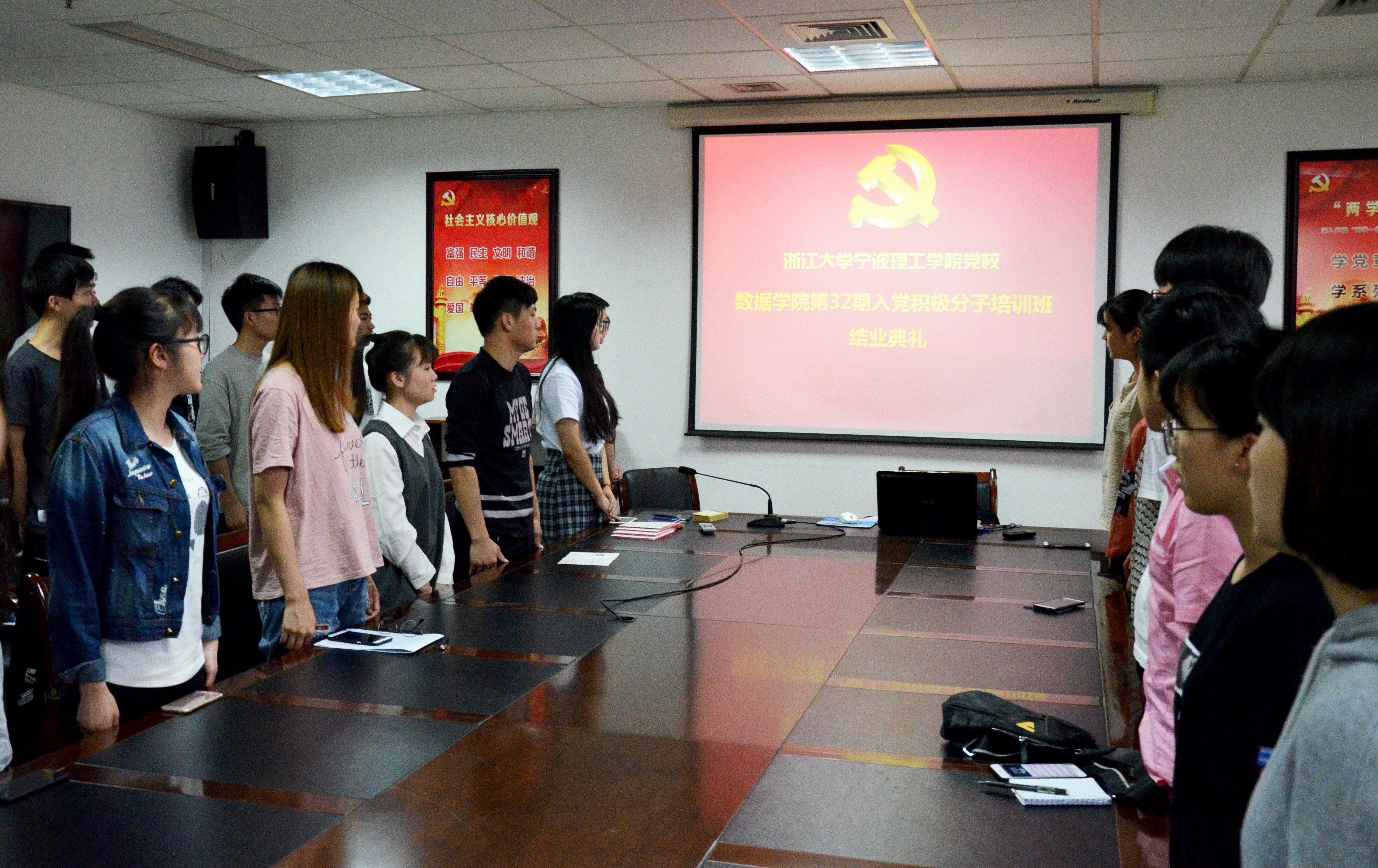 仪式在参会人员奏唱国歌中拉开了序幕。首先,由三位老师为本期优秀学员颁奖。黄子萍同学作为优秀学员代表发言,她代表学员感谢学校提供的学习平台,表示她将不忘初心,继续努力,在日常生活中坚持党的理论学习,并在实践中起到榜样带头作用。之后,方国娟老师对本次入党积极分子培训班的总体情况做了点评,指出了一些不足并提出了一些指导性的建议。她强调本期党课培训虽已告一段落,但仍要保持学习的动力,勤于学习,通过不断的学习提升自己的理论修养和思想境界。同时要身体力行,学以致用,自觉接受党组织的培养考察,不断增强组织纪律性,用党的纪律严格要求自己,并从服务身边同学做起,在实践中接受党组织的考验。随后,由全体人员共唱国际歌,本次结业典礼落下了帷幕。
