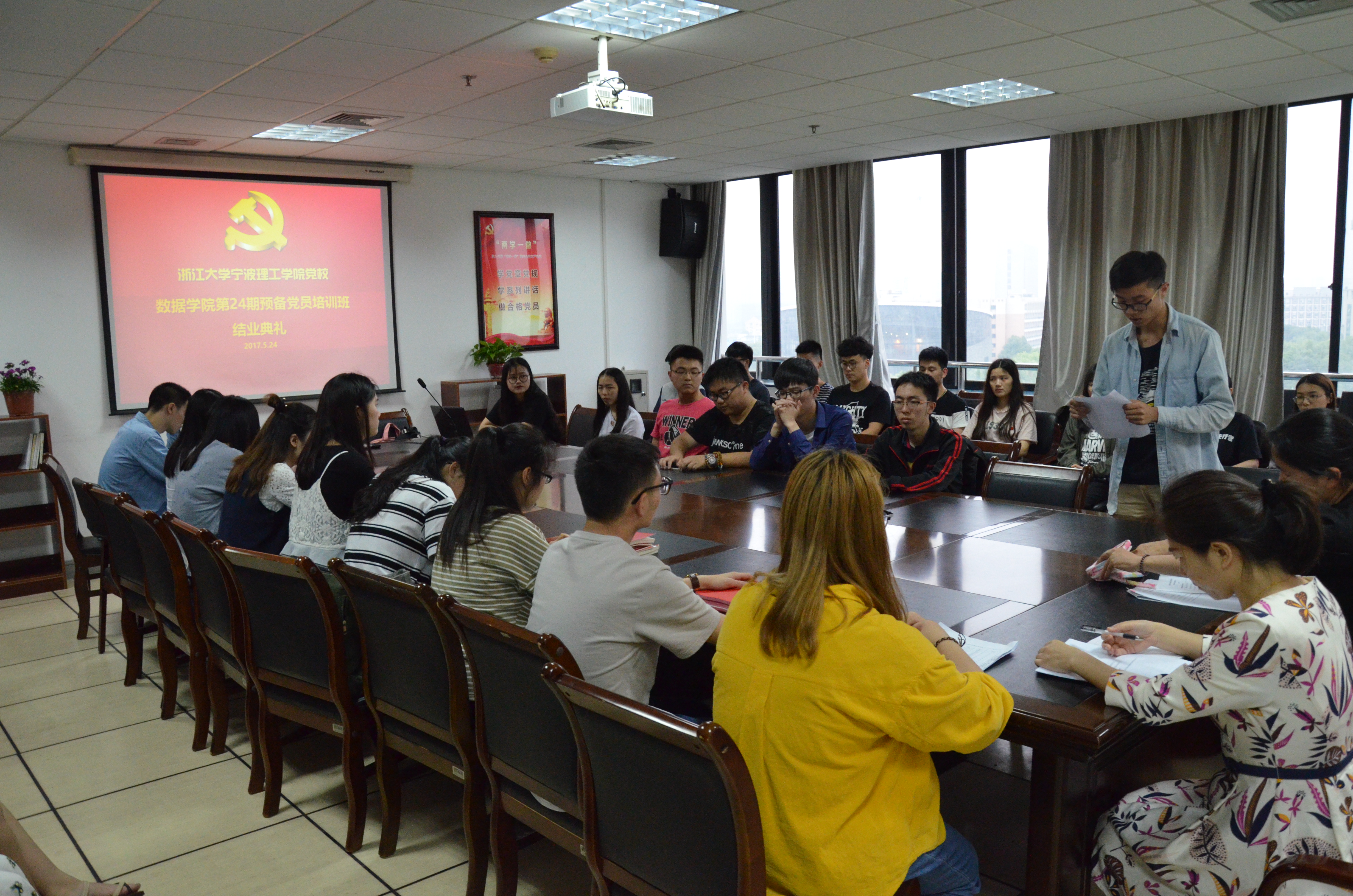 典礼在全体成员奏唱国歌中展开。会议开始,由学员代表卫超越同学发言。他代表全体学员感谢学校提供的学习平台,并表示一名党员,应牢记自己的使命。在日常生活中,将时刻注意自己言行,身体力行为他人服务;在工作学习上要起到带头作用,严于律己,加强学习,为实现党的伟大复兴献出一生。随后,由方国娟老师对本次会议做主要讲话。她回顾总结了在场全体预备党员的学习和结业情况,并提出了几点希望,一要坚定自己的理想信念,谨记党的宗旨;二在工作上,要有担当,有勇于开拓创新的精神,用心做事,扎扎实实做好本职工作;三在生活上,要有乐观向上的态度,正直做人诚信做人;四在学习上,要不断加强学习,起到先锋模范作用。最后,全体成员共唱国际歌,本次会议圆满结束。