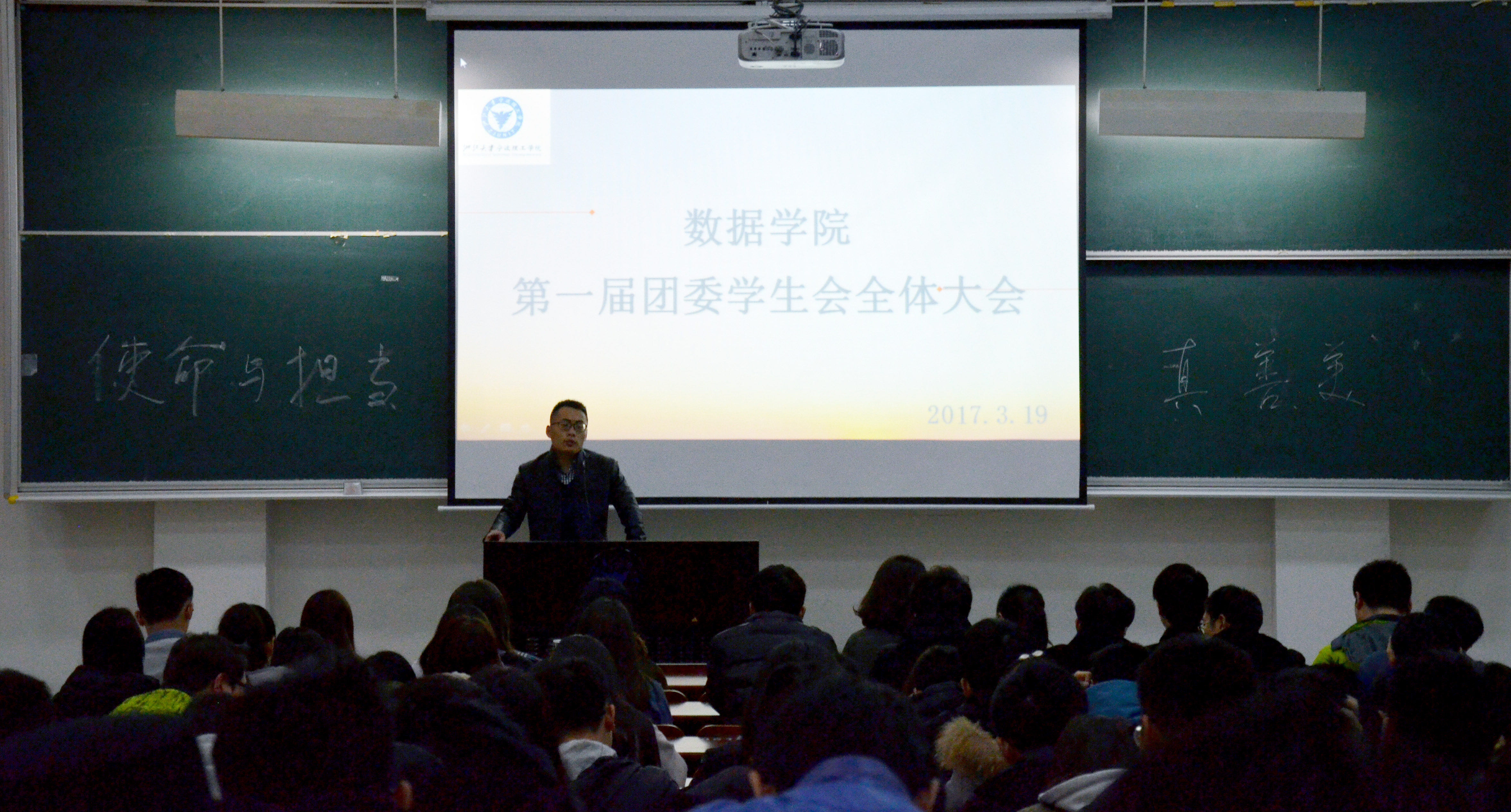 2017年3月19日晚上六点半,9728太阳集团在NC102召开了第一届团委学生会全体大会。会议目的是明确新学期团学工作新思路、新方向,同时对团学各部门新学期的工作开展进行动员。参加会议的有团委书记陈辉老师、各主席团成员、各部门部长及各部门干事。