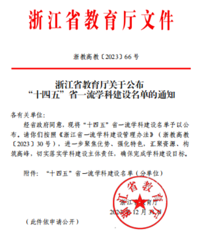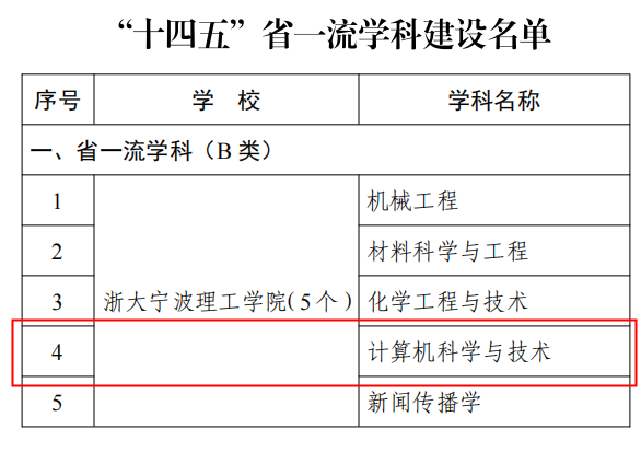 近日,浙江省教育厅公布“十四五”省一流学科建设名单,我院计算机科学与技术学科列入十四五”省一流学科。