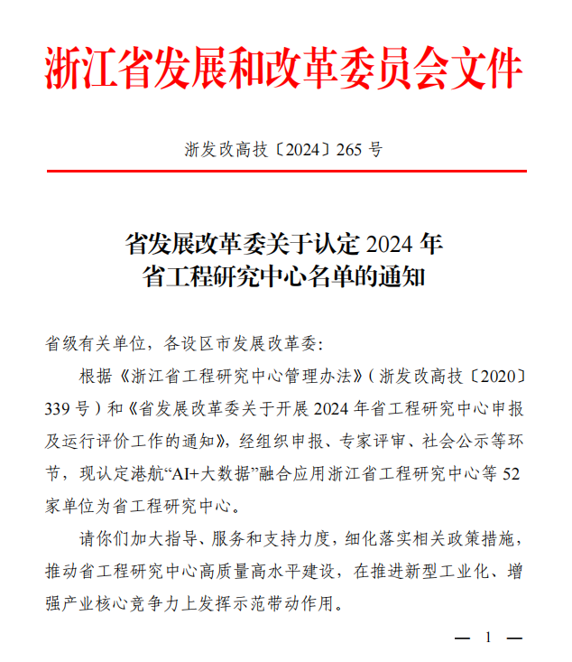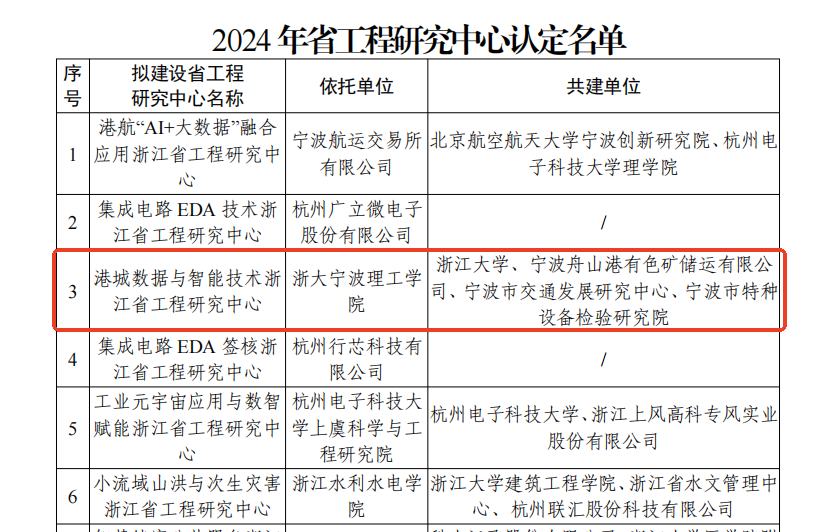 10月21日,浙江省发展和改革委员会发布了《关于认定2024年省工程研究中心名单的通知》,由我校太阳集团网tyc9728牵头、信息科学与工程学院共同参与申报的港城数据与智能技术浙江省工程研究中心获认定批复。