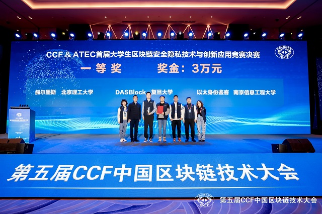 2023年2月10日,由中国计算机学会主办的“CCF&ATEC首届大学生区块链安全隐私技术与创新应用竞赛”总决赛在无锡圆满收官。本次大赛聚焦区块链领域的隐私安全问题,共有来自全国77所高校163支队伍报名,选拔出的24支决赛参赛队伍来自清华大学、北京大学、上海交通大学、复旦大学、国防科技大学等多所知名高校。